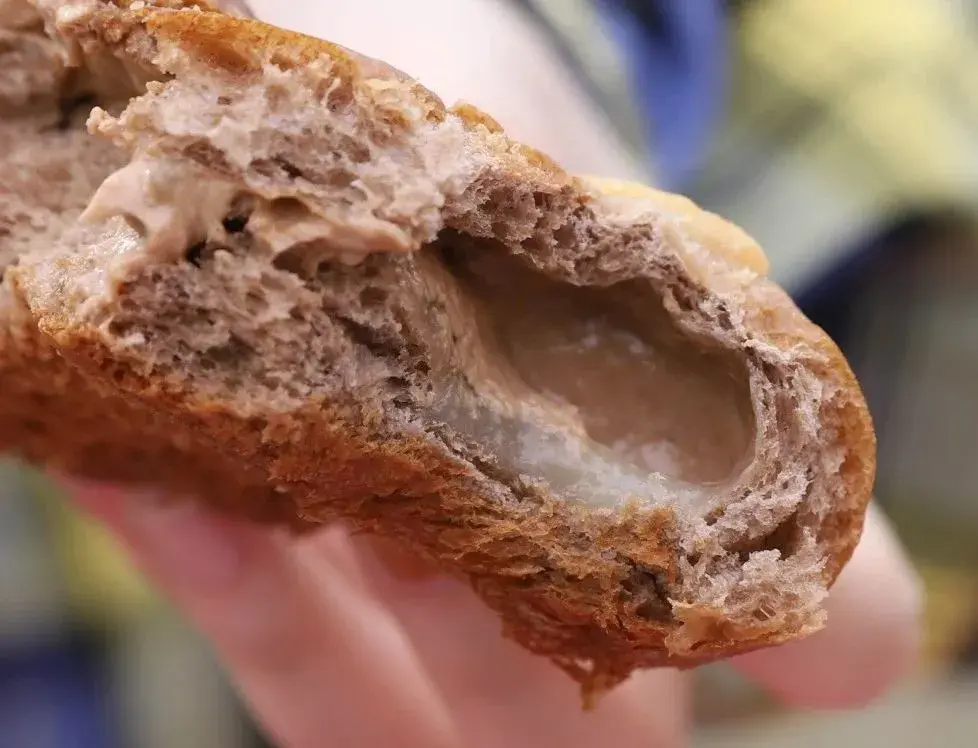 咬一口就能看见流心,里面还还有一层薄薄的麻薯,口感变的软软糯糯的,流心so甜,但是搭配起面包又刚刚好~。