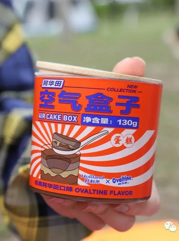 【阿华田空气盒子蛋糕】32元/盒,蛋糕体是阿华田口味的轻乳酪,甜度稍微比爆浆球要高一些,底部是浓浓的阿华田酱。蛋糕中间,还能吃到阿华田酷脆的口感,满足爆表。