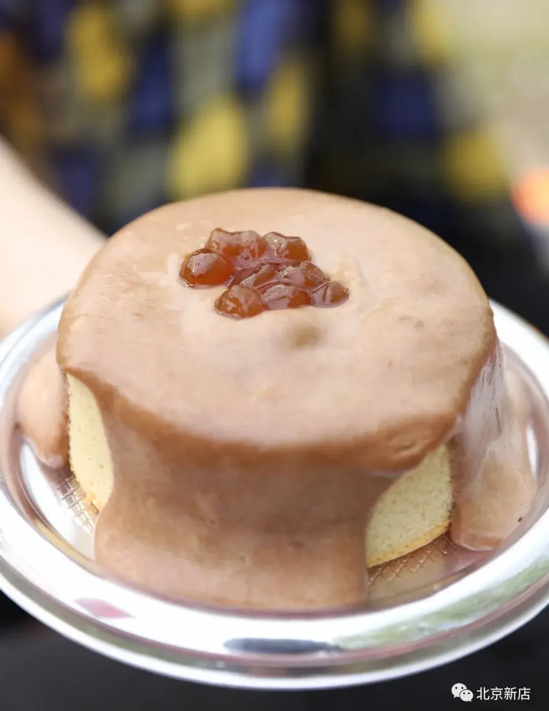 【珍珠奶茶风味蛋糕】16.5元/个,有点像爆浆蛋糕,但实际上外面奶油是凝固的,点缀着珍珠,下面是普通的蛋糕体,整体太甜了香精味道有点重,新仔就不在这里推荐啦~