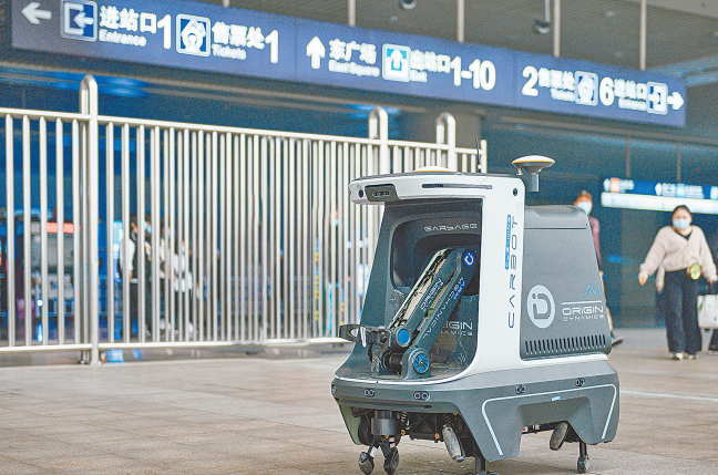 中原动力推出的智能清洁机器人在郑州东站西广场投用