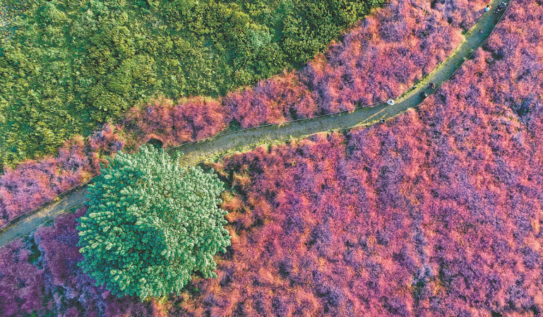 郑东新区龙湖北岸的网红草成为市民休闲打卡地