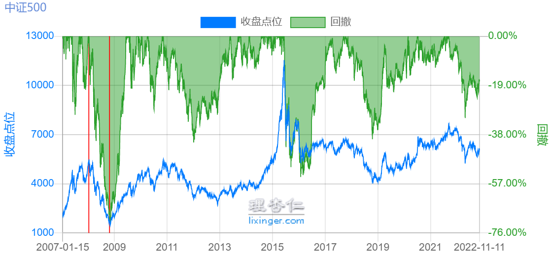 我们继续观察中证500在不择时、不加任何策略下该指数的“原始”表现,为投资提供参考。