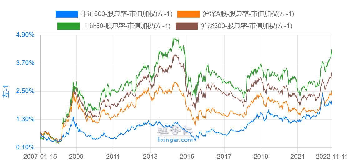 1、不计股息的话,长期(10年)持有中证500的年化收益在7%左右,比上证50和沪深300都高。但中证500作为小盘股指数,股息率自然低于能稳定分红的上证50和沪深300。