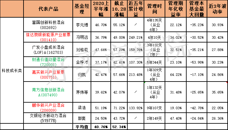 科技成长类基金上半年平均涨幅40.76%,截止10月28日今年累计的平均涨幅52.34%。