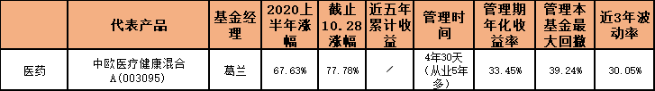 医药类基金只主要观察了一只,上半年涨幅67.63%,截止10月28日今年累计涨幅77.78%。
