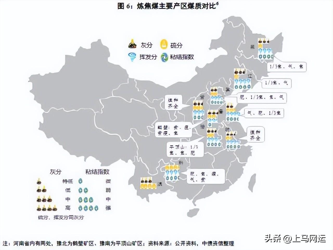 其中山西、安徽炼焦煤品种齐全,山东主要产气煤、气肥煤和1/3焦煤,河北主要产肥煤、1/3焦煤、焦煤、气煤,河南主要产1/3焦煤、焦煤、贫瘦煤,黑龙江主要产1/3焦煤、气煤和焦煤。